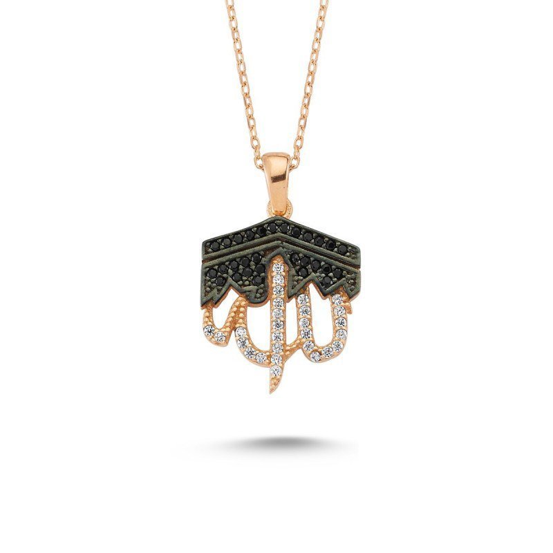 Allah Yazılı Kabe Gümüş Kolye