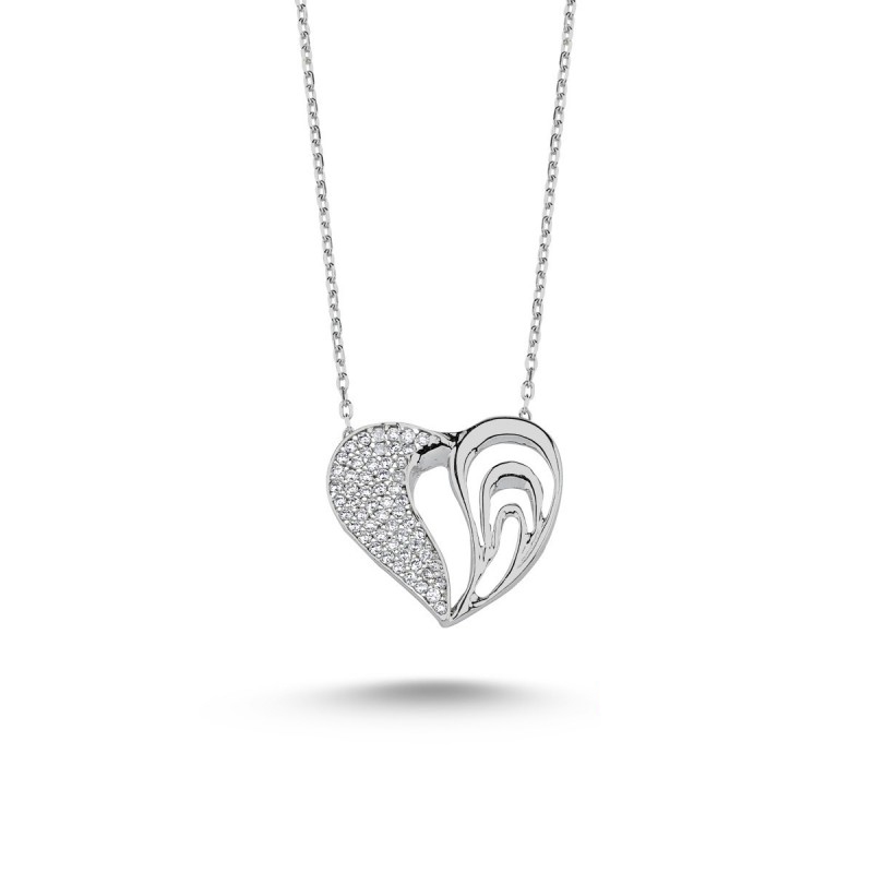 Kalpli Beyaz Zirkon Taşlı Beyaz Kadın Gümüş Kolye 925 Ayar
