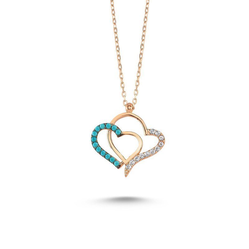 Turkuaz Taşlı Kalpli Gümüş Kolye